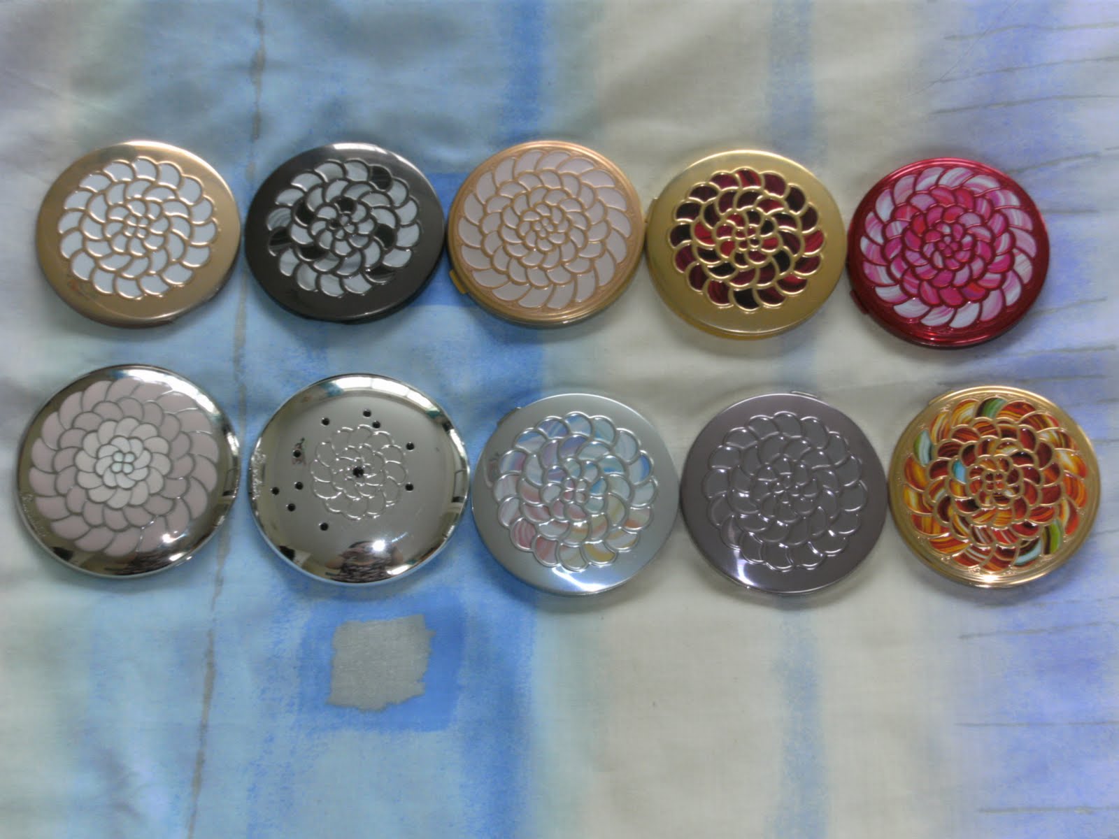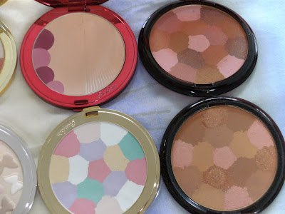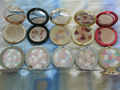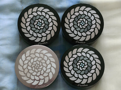I thought I'd also show you my whole collection of Guerlain Voyage Powders (also included the Terracotta Bronzing Powders as they are the same mosaic design as some Voyage Powders) and while I was at it, the pressed powder version of the Meteorites pearls. A word of warning about these, if you are planning on buying these from eBay, be careful as I have seen fakes of these powders. They are set deep in their container and come with a puff. The real ones as you can see in my pictures, are raised and don't come with a puff.