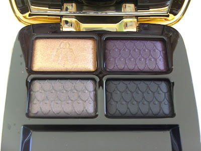 Right then, next up, the eyeshadows. Once again, the outer packaging is the usual black we expect from Guerlain, but on the pouch you get the lovely bee motif again. The compact is gold (I think this varies from one collection to the other) and on the gold eyeshadow you have the little bee again. The rest of the shades have a pattern that's supposed to represent the honeycomb I think. I apologise for the lack of swatches, but I have a bad habit of not touching pretty eyeshadows for a while, so if you'd like to see some swatches, I suggest you head over to the lovely Karla Sugar's website as her swatches are one of the best ones around anyway.