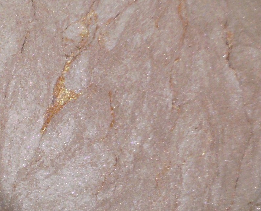 It is Laura Geller Blush n Brighten in Boysenberry Highlighter in Amaretti. I know, this is a blush and therefore not a dupe for Pleasureflush, but take a look at the highlighter section and you will find a beautiful light pink powder with golden veining. Remind you of anything? Let's take a closer look: