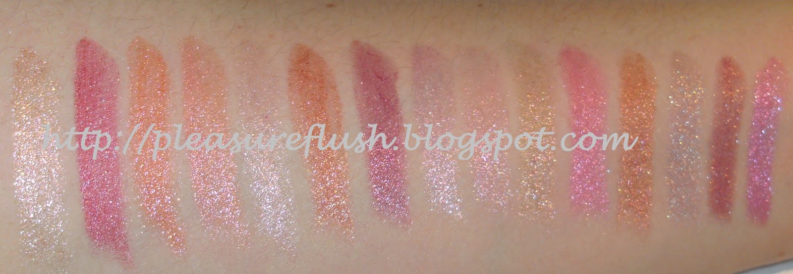 This is the final instalment of my Mac lipstick swatches, the dazzle lipsticks. These were limited edition lipsticks that were released last year. I think I ended up buying all of them (oops). They are really lovely and sparkly, look great on top of other lipsticks, but some work really well on their own.