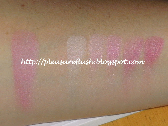 | All 5 shades mixed together (left), shades swatched individually (right) Taken with flash |